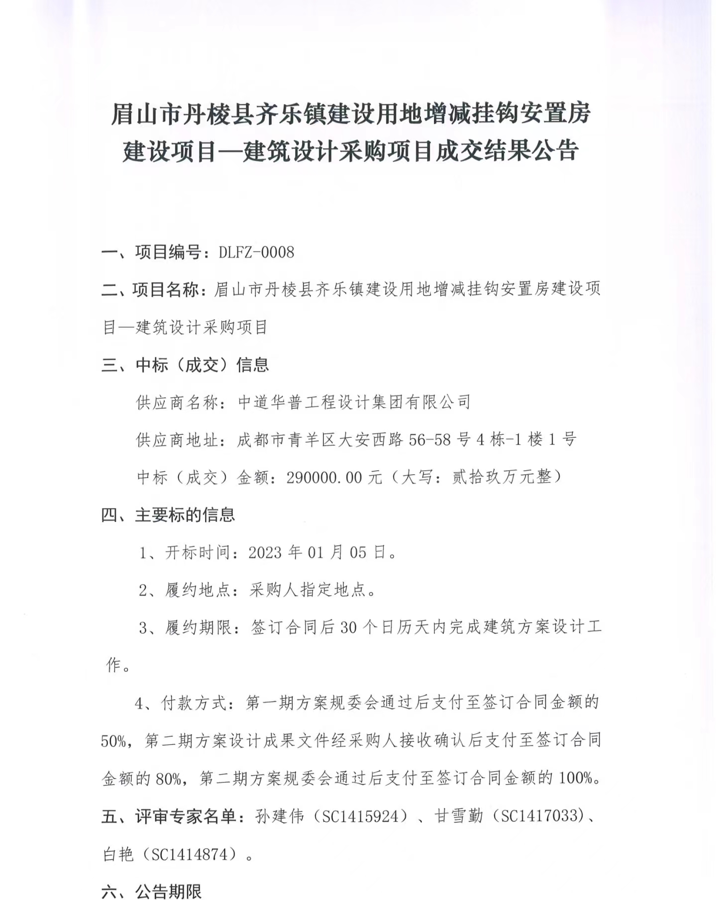 眉山市丹棱縣齊樂鎮(zhèn)建設(shè)用地增減掛鉤安置房建設(shè)項(xiàng)目--建筑設(shè)計(jì)采購項(xiàng)目成交結(jié)果公告