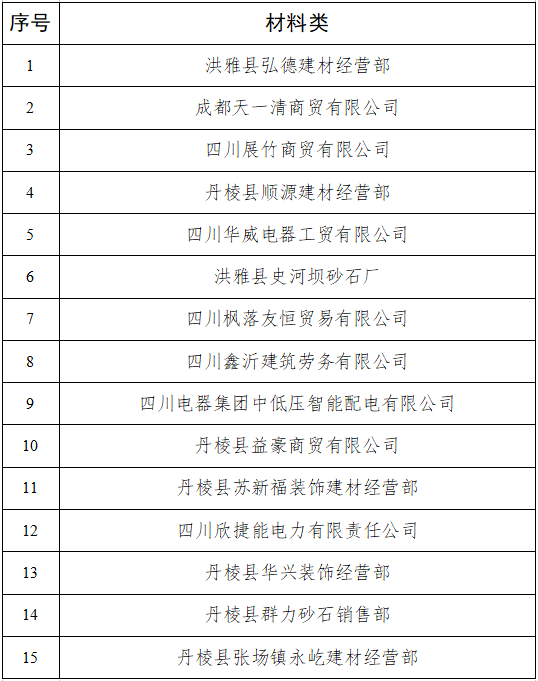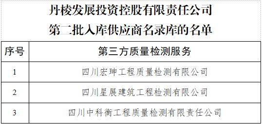 附件:丹棱發(fā)展投資控股有限責(zé)任公司第二批入庫(kù)供應(yīng)商名單