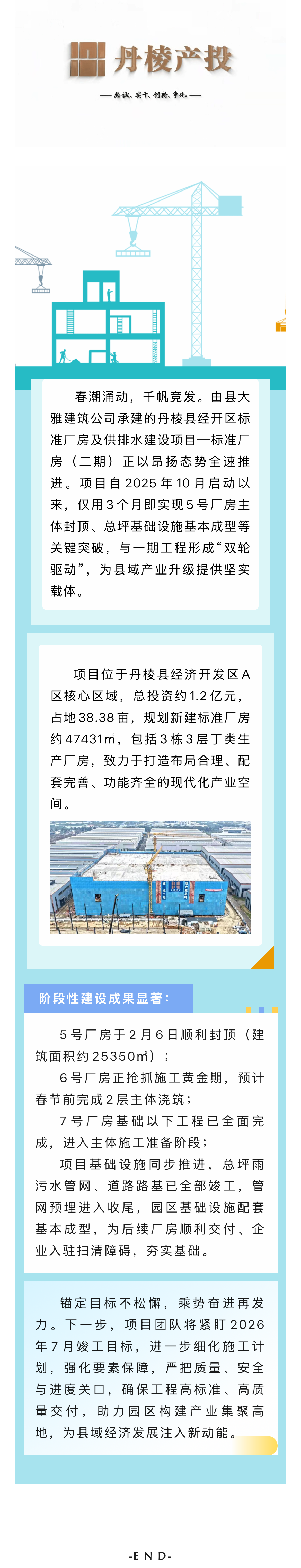 【縣大雅建筑公司】筑跡:乘勢(shì)而上再提速 丹棱縣經(jīng)開(kāi)區(qū)標(biāo)準(zhǔn)廠房及供排水建設(shè)項(xiàng)目—標(biāo)準(zhǔn)廠房(二期)全面攻堅(jiān)​