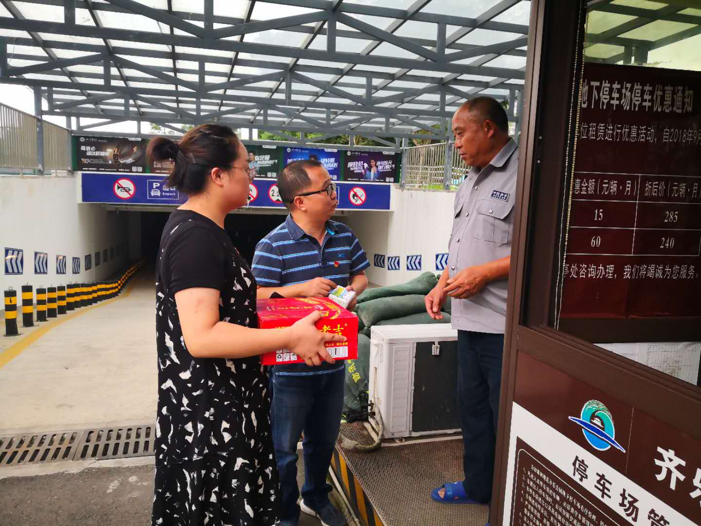 慰問活動由公司副總經(jīng)理熊鷹睿同志帶隊,活動中,丹發(fā)展工會為齊樂公園地下停車場、三余橋生活市場地下停車場全體一線職工發(fā)放清涼飲料,真誠感謝一線職工不畏酷暑、堅守崗位,叮囑他們要合理安排作息時間,注意勞逸結(jié)合,落實好各項防暑降溫措施,確保安全工作。