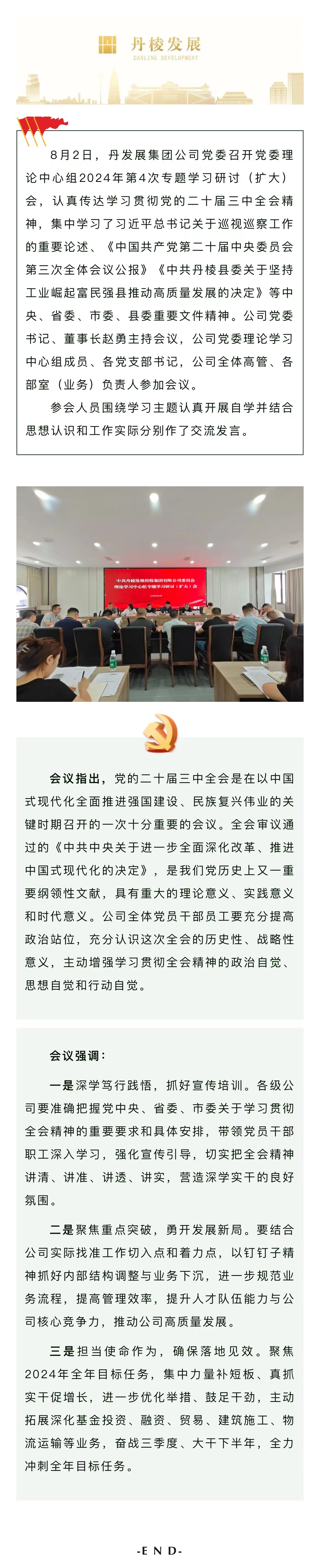 丹發(fā)展集團(tuán)公司黨委理論學(xué)習(xí)中心組召開(kāi)2024年第4次專(zhuān)題學(xué)習(xí)研討(擴(kuò)大)會(huì)
