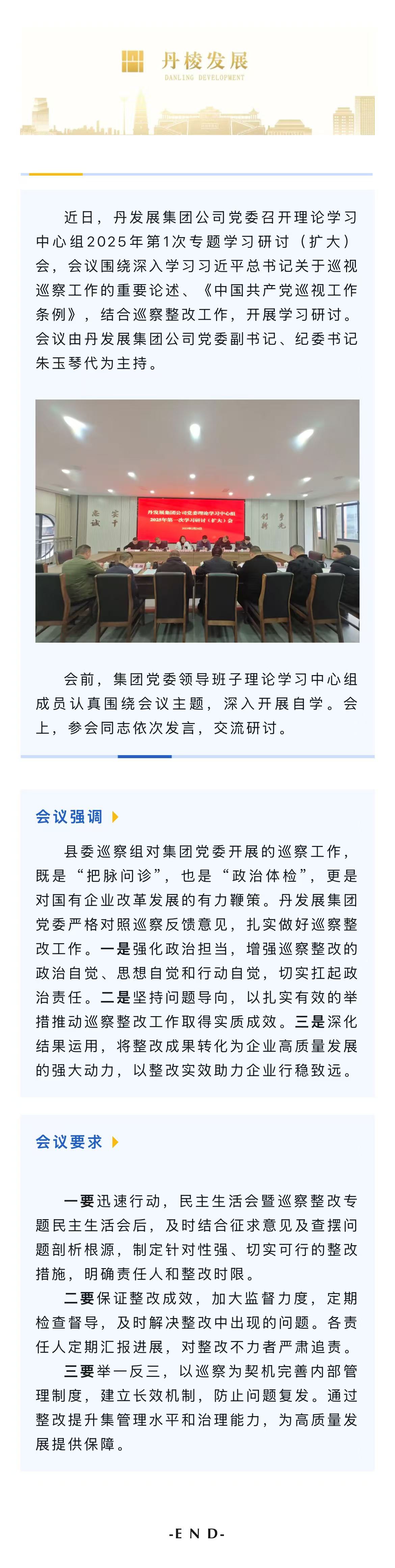 丹發(fā)展集團(tuán)公司黨委召開(kāi)理論學(xué)習(xí)中心組2025年第1次專(zhuān)題學(xué)習(xí)研討(擴(kuò)大)會(huì)